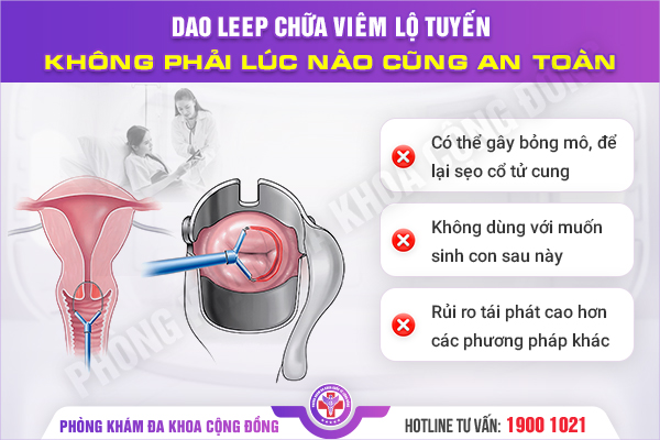 Dao LEEP dù được xem là một trong những bước tiến trong điều trị viêm lộ tuyến, nhưng rõ ràng không phải lựa chọn phù hợp cho tất cả mọi người. Nhất là khi xét đến nguy cơ để lại sẹo cổ tử cung, ảnh hưởng đến khả năng sinh sản và chi phí không hề nhỏ.