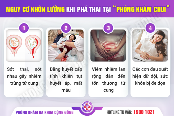 - Thủng tử cung: Biến chứng nguy hiểm do can thiệp thô bạo, gây tổn thương nội tạng, cần phẫu thuật cấp cứu gấp nếu không có thể vô sinh vĩnh viễn.